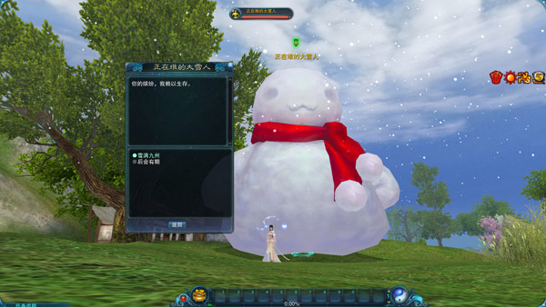 活动期间,河阳城(6,-288)和神域(265,-321)外会出现一个NPC【正在堆的大雪人】。